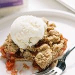 Is a cobbler or Baked Apple Crunch like this, a pie? The debate rages on. One thing everyone can agree on? That it is totally delicious! Chunks of crisp apples bake up sweet and plump, beneath a crumbly gluten-free oat crust. And your guests will never guess the secret ingredient that makes it so moist and rich.