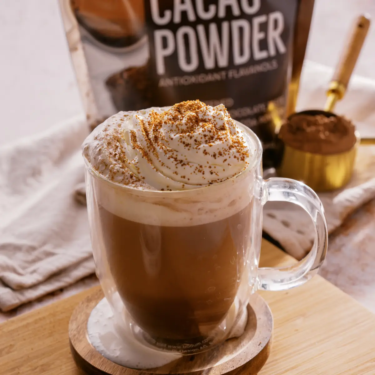 1. In a saucepan, combine the BBF Cacao Powder, sweetener, and cold milk of choice. Whisk until the ingredients are completely smooth. As the milk heats the BBF Cacao Powder will dissolve into the milk. 2. Place the saucepan over medium heat, whisking constantly to ensure an even distribution of the BBF Cacao Powder. 3.Continue heating until the mixture is steaming and a light simmer begins. Avoid bringing it to a full boil, as this can scorch the milk. 4. Pour the hot chocolate into mugs and add your favorite toppings, such as whipped cream or marshmallows. 5. Enjoy your Cacao Hot Chocolate!