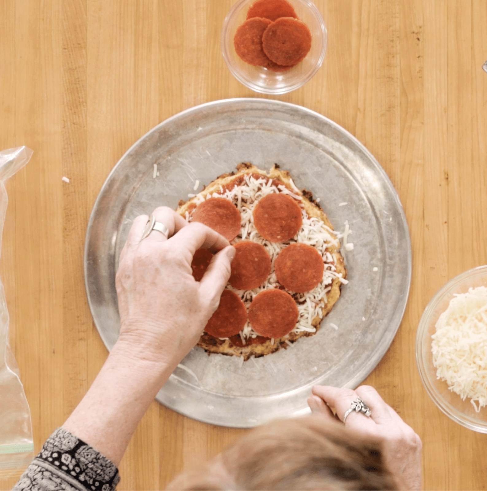 1. Preheat oven to 450F. 2. Add cauliflower to food processor in small batches. Pulse until the consistency of rice. Add to a large sauté pan and cook over medium heat, stirring frequently for about 10 minutes, until the moisture has evaporated. If it still seems wet, place cauliflower in a cheesecloth and wring out excess water. 3. In a large bowl mix together cauliflower, oregano, basil, garlic, salt, superseeds, eggs, flour and cheese until well blended but not mushy. 4. Oil 2 cookies sheets with MCT Oil. Use a large ice cream scoop to divide into 8 pizza crusts (4 on each sheet). Oil your hands and form into round crusts. Brush with MCT oil. 5. Bake for 15 minutes or until tops are slightly golden. Remove from oven and use 2 spatulas to gently move to foil or waxed paper and place in freezer bags. 6. To make a quick pizza, remove from freezer, place on a cookie sheet, top with your favorite toppings and cook at 425°F for 10 minutes. Easy, delicious and healthy!