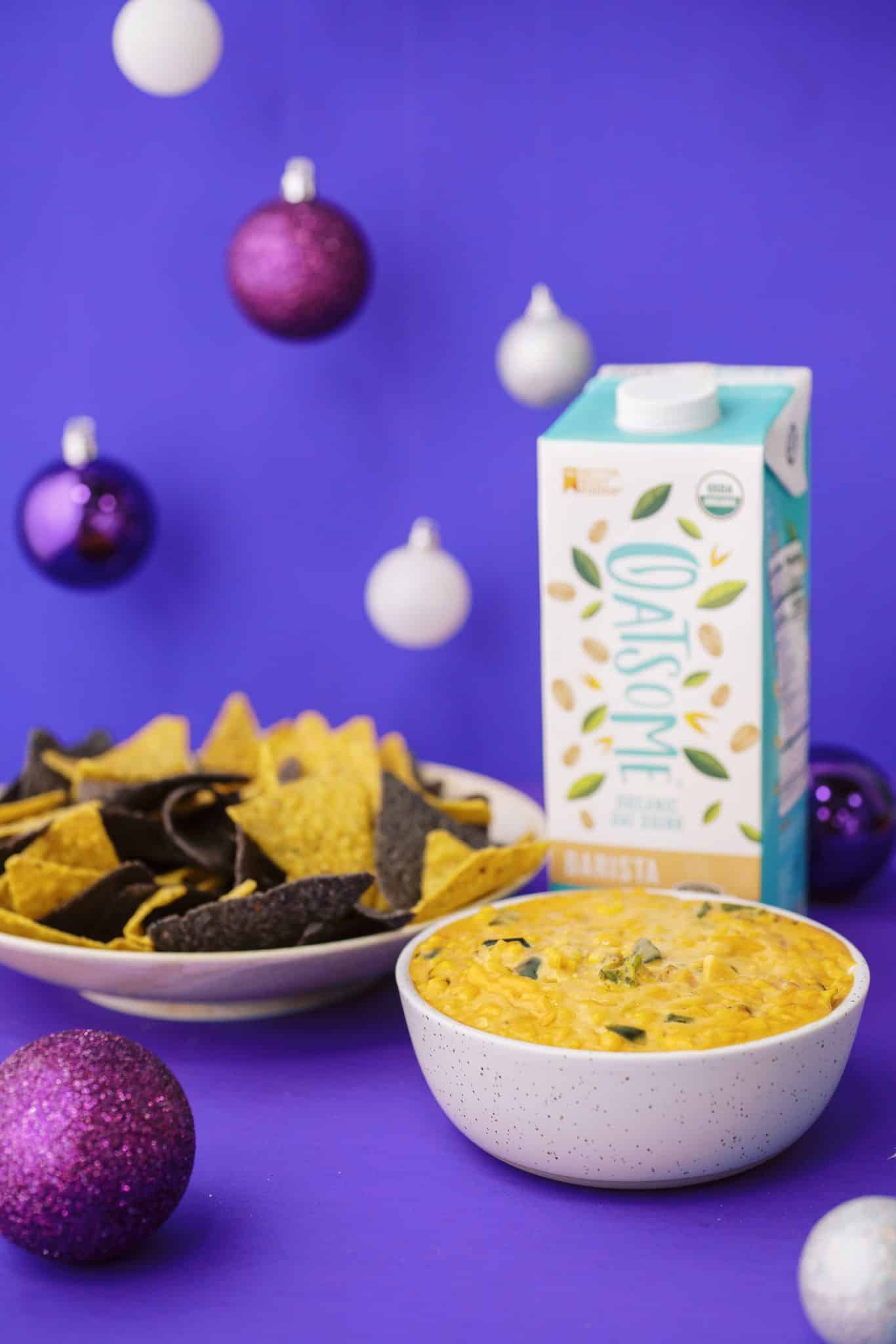 1. In a small dish or bowl, combine the oat milk and vinegar and allow to rest for 3-5 minutes or until thickened slightly. Mix in cornstarch or arrowroot, stirring to dissolve. Set aside.