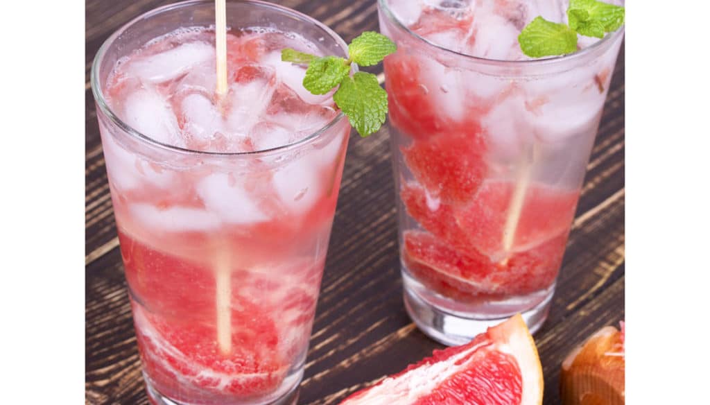2. Add ice to glass. Pour juice and mint into glass half-way. Muddle into ice. Fill glass with club soda.