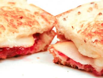 2. Spread BetterBody Foods(BBF) Virgin Organic Coconut Oil onto one side of each bread slice. Layer Brie, 2 tbsp cranberry sauce, pear slices and Havarti onto to bread. (Make sure cranberry sauce is in the middle of your sandwich so your bread doesn’t get soggy.)