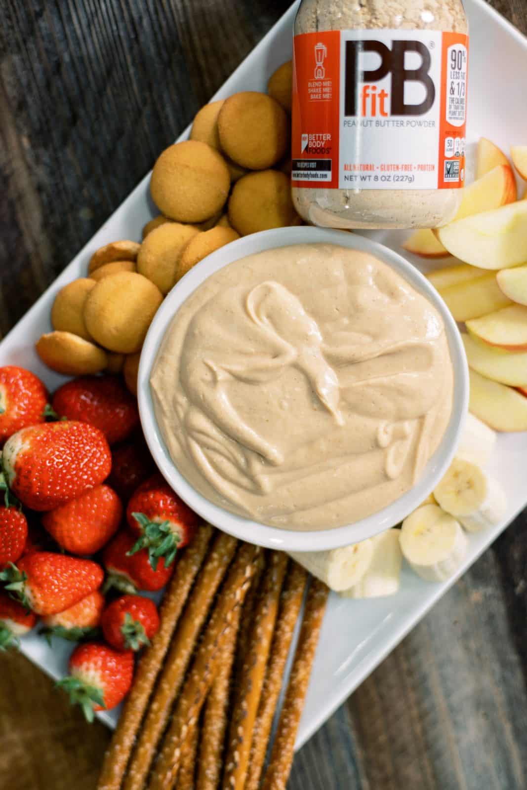 1. Cream together the mixed PBfit, cream cheese, and powdered sugar with a electric mixer. 2. Add the whipping cream and vanilla and whisk until fluffy. 3. Enjoy with your favorite fruit and treats.