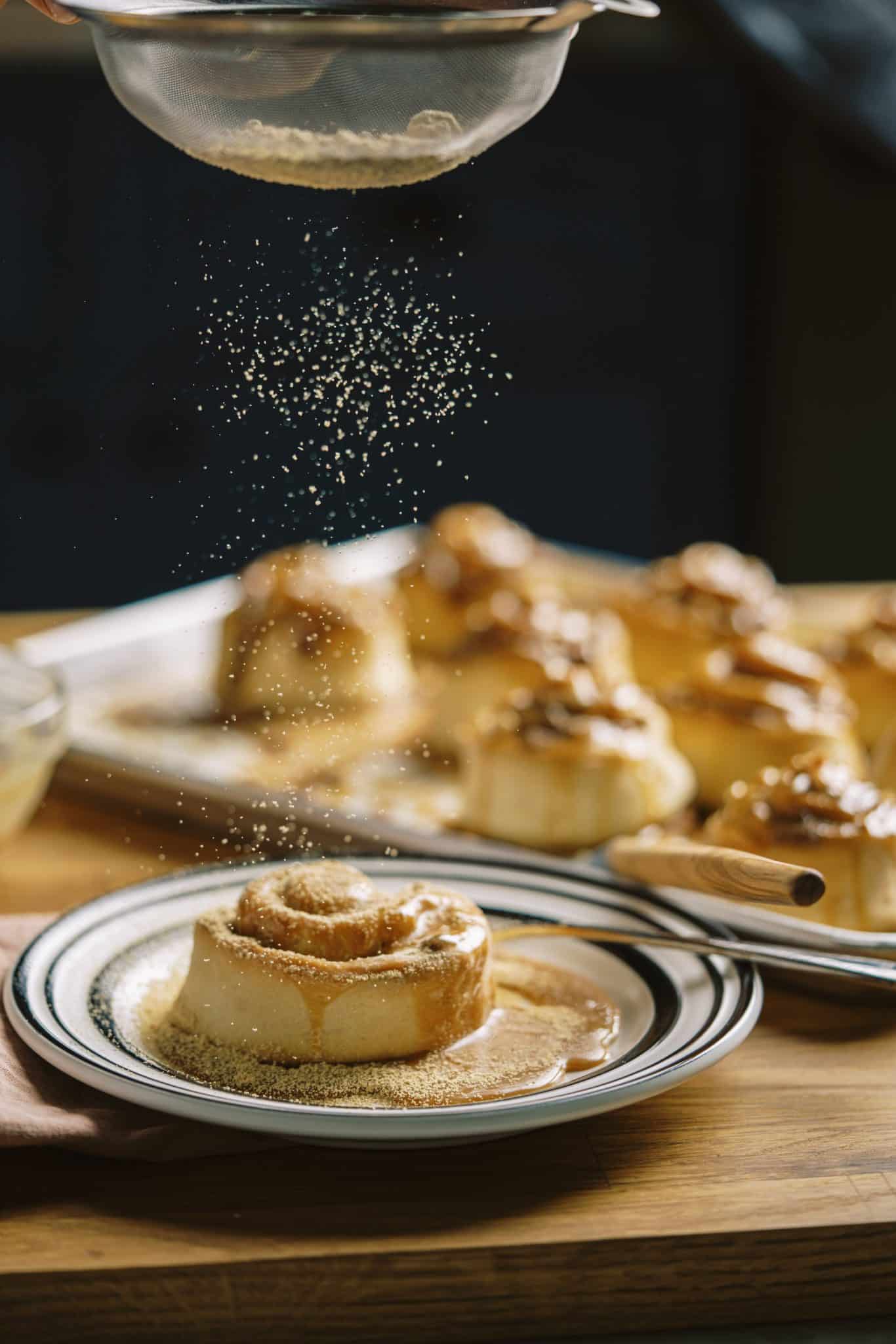 6. For the Glaze: Stir the powdered sugar, PBfit, vanilla and water in a bowl until smooth, adding more water as needed so the mixture is easily drizzled. Drizzle over warm cinnamon rolls to serve.