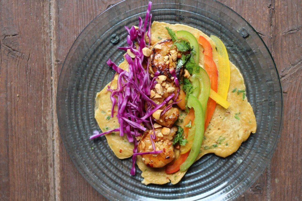 1. Add julienned peppers, cabbage, crushed peanuts, cilantro, and lime juice to taste!