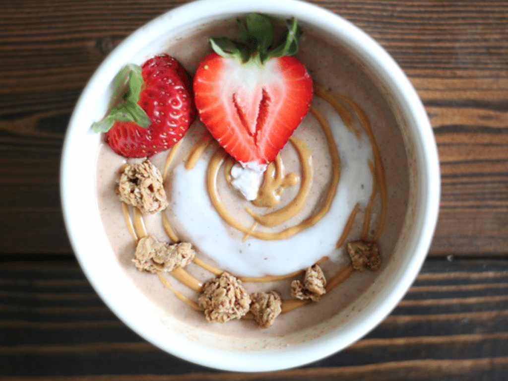 1. Mix all ingredients into a blender, pour into bowl, layer with fresh cut fruit, granola and any other topping of your choice. 2. We drizzled a little extra PBfit and cashew milk on top.