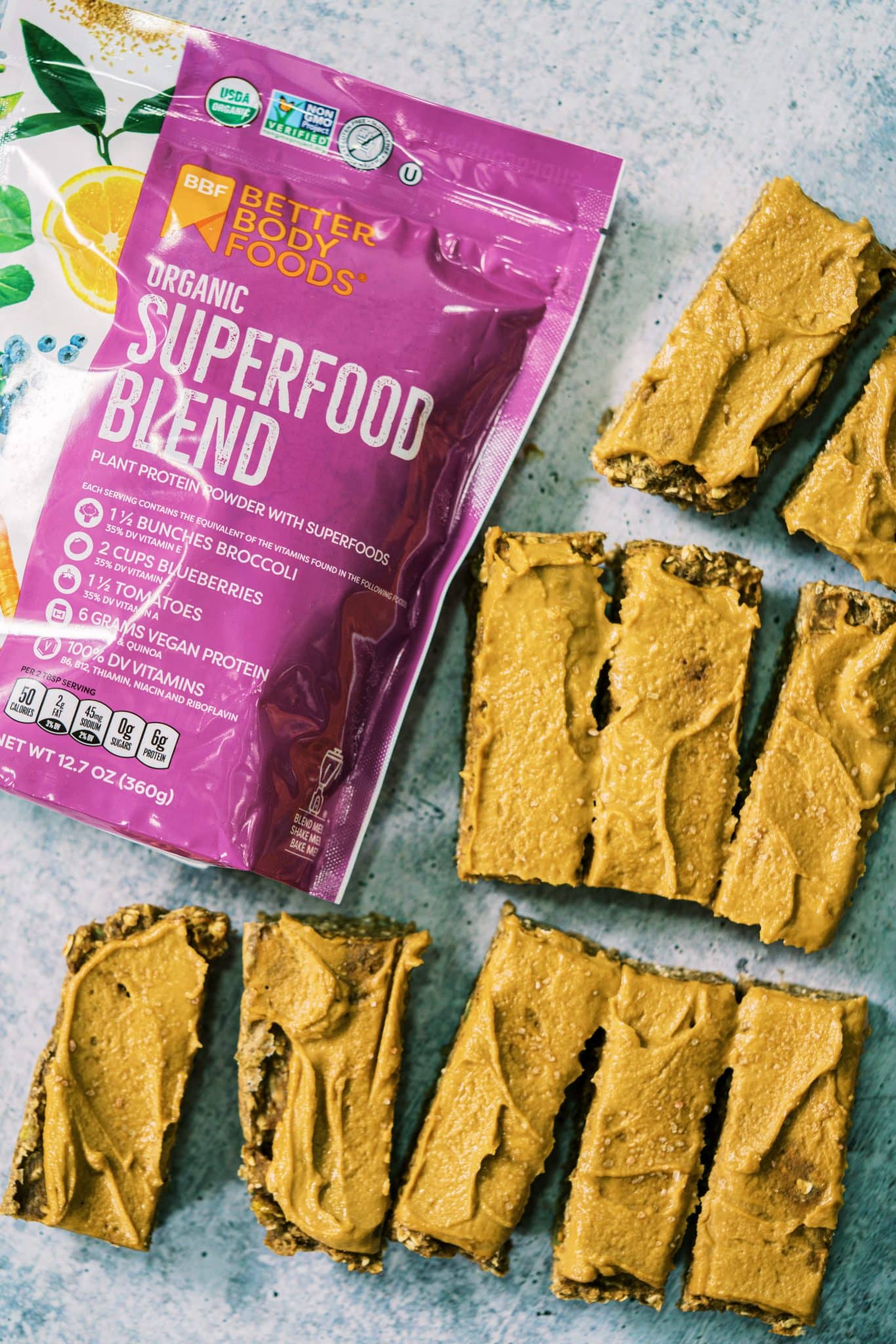 5. Once cooled slightly, spread the remaining 1/2 cup pbfit over the top just like frosting.