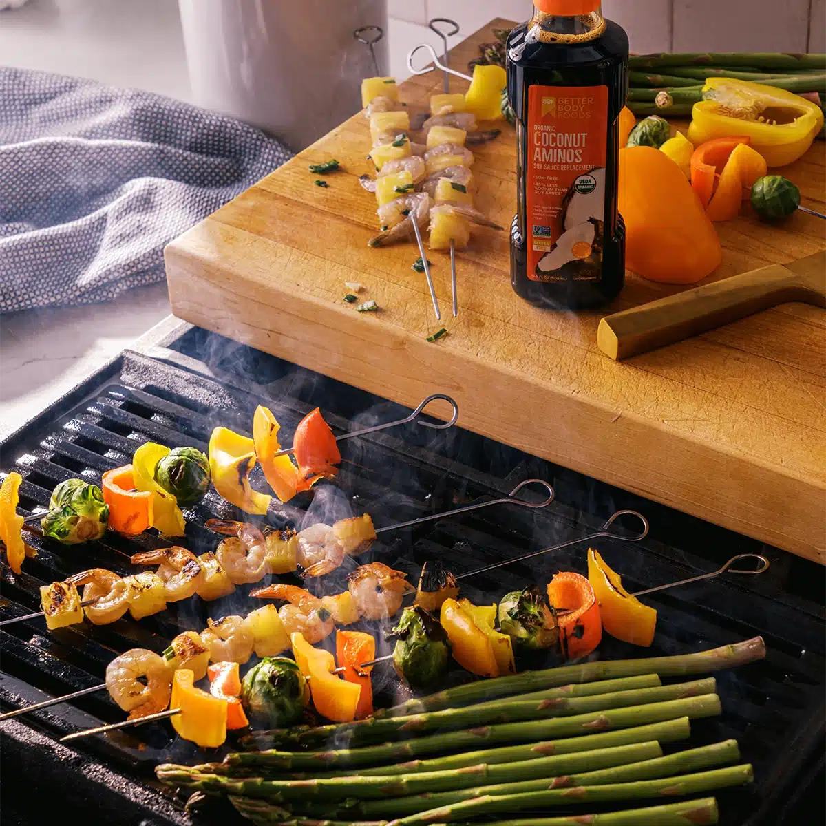 5. Grill the kebabs, turning occasionally, until the shrimp are fully pink and opaque—about 4–6 minutes total.