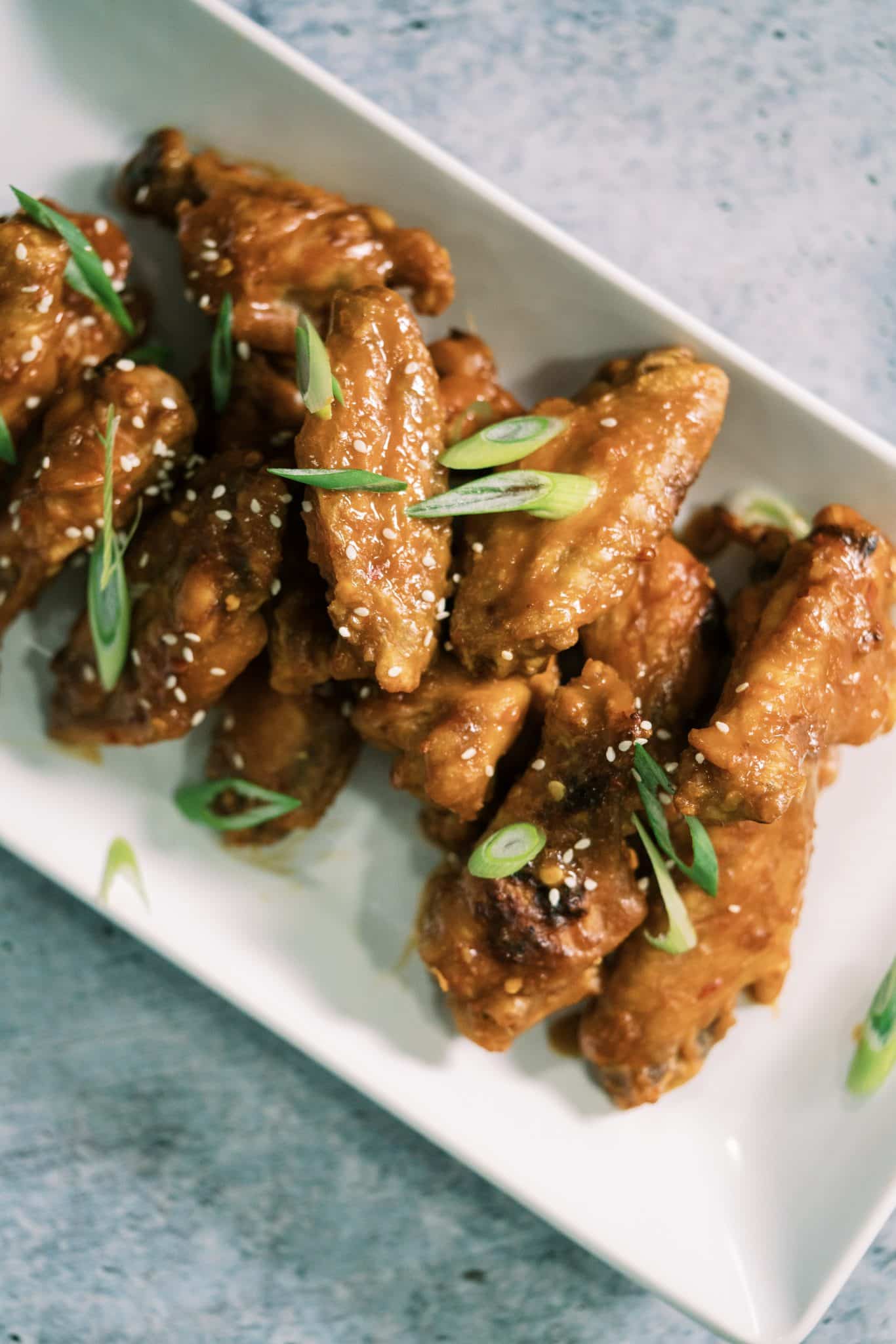 2. Rinse the wings and drumettes, pat them dry and transfer them to a large bowl. Toss the wings with avocado oil, sesame oil, and salt. Place the wings on a baking rack placed on top of a foil-lined baking sheet, spreading wings into a single layer to ensure they aren’t touching.