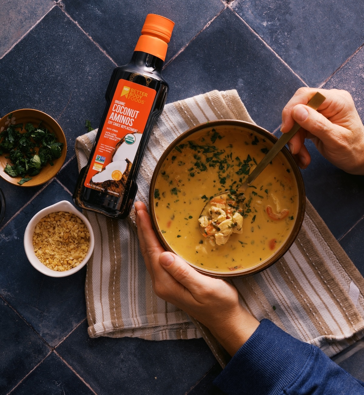 1. In a large pot, warm the coconut oil over medium heat. Add the garlic, shallots, and red pepper, and sauté until softened and fragrant.