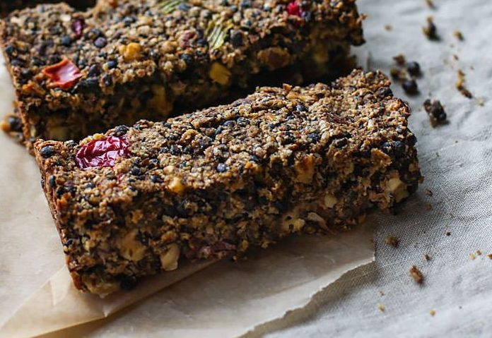 1. Cook your lentils. This should only take about 20 minutes. Cooking instructions for the lentils should be included on their package label. Once lentils are done, drain and measure out 2 cups to use in this recipe. Set aside. 2. In another bowl, combine your chia and water, mix and set aside to let it gel. Preheat oven to 350F 3. Combine your lentils, seasoning, cranberries, and vegetables all in one skillet with oil. Cook on medium heat until onion are fully cooked and lentils are soft. lentils easily should be easily mashed. Should take about 10 minutes. Once that is cooked, turn off skillet and place everything in a large bowl. Set aside 4. Combine oats and bread in a food processor, grind you until you get a flour texture. 5. Add your oat flour to your lentils and vegetable bowl, then add in your chia egg/mixture. Mash and mix everything together with hands or spoon and then press into a 9x5 greased baking pan. 6. Bake at 350F for 45 minutes.