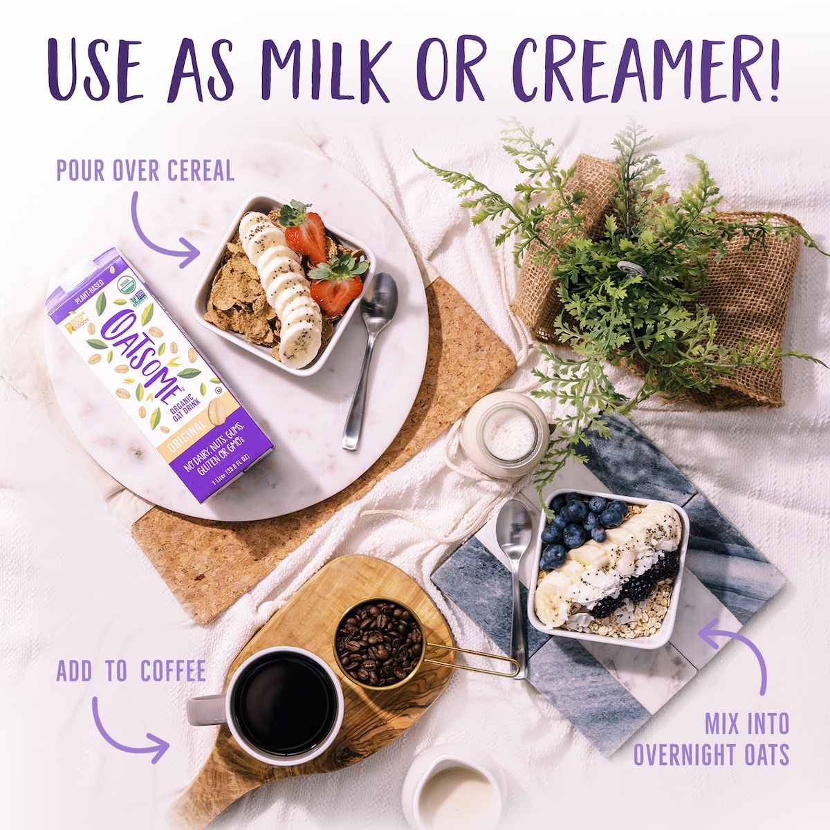 Best of all, Oatsome® does not need to be refrigerated until it’s opened. This means you can store a couple of cartons in your pantry until you’re ready to use them. Always keep one in the fridge to enjoy a cold, creamy oat milk anytime in your daily cup of joe or bowl of cereal.