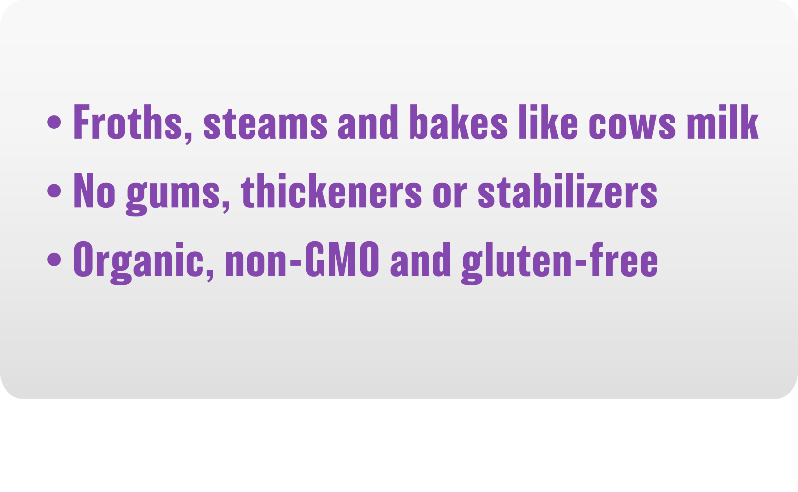 There’s a reason we call it awesome, wholesome, Oatsome! Get the best of all worlds with a great-tasting organic oat milk that you’ll actually want to drink. It’s deliciously drinkable, fantastically frothable, and free from dairy, nuts, artificial flavors, and gums. Enjoy the taste wherever you use milk.