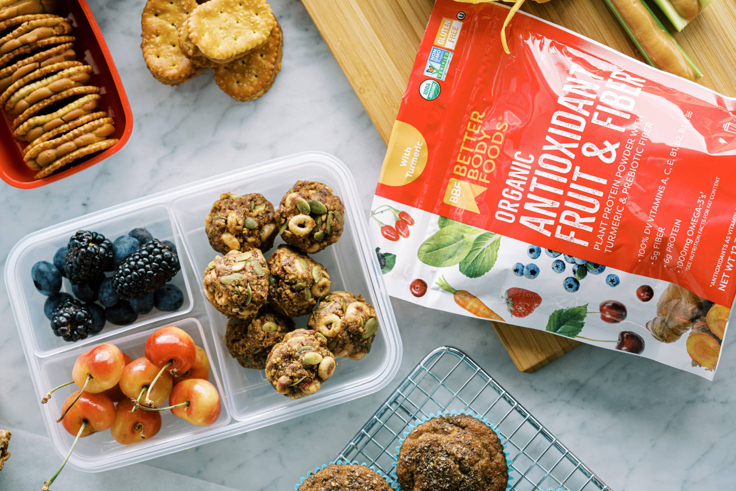 Our Organic Antioxidant Fruit and Fiber Blend helps sneak more antioxidants into any diet. Each serving contains fiber, protein and foods like turmeric, chia seeds and baobab. This antioxidant blend provides 100% daily value of Vitamin A, B1, B2, B3, B6, C and E per serving. And here’s the best part: the neutral flavor makes it a super solution for picky eaters.