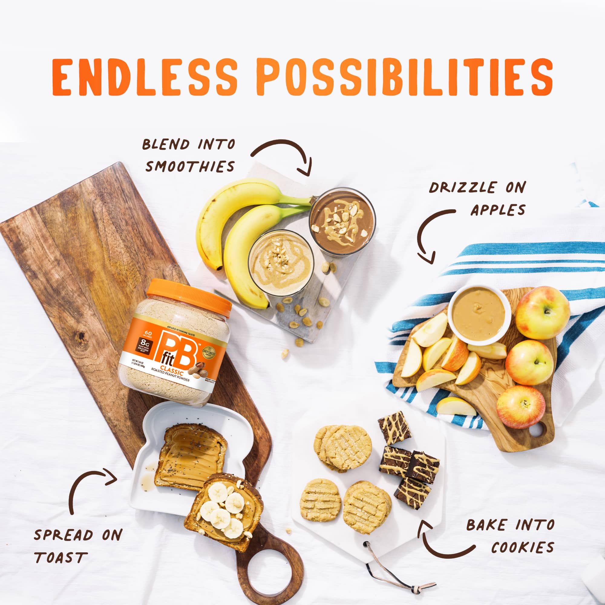 PBfit Classic Roasted Peanut Powder offers the irresistible flavor you’ve grown to love, with approximately 87% less fat and 1/3 the calories of traditional peanut butter. The perfect solution for those craving delicious peanut flavor in a gluten-free, plant-based option. Just add water!